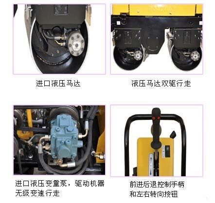 鼎誠公司多年致力于小中型工程機械的研發(fā)與生產,現在推出豪華版手扶式雙鋼輪壓路機,此款機器采用國外先進技術,原裝進口液壓馬達,進口液壓變量泵,無級變速,雙驅行走,自重840kg,振動力可達3噸,前輪可液壓轉向,配備前進后退手柄及左右轉向按鈕,工人一只手即可完成此款機器的操作,就是這么方便,就是這么給力。